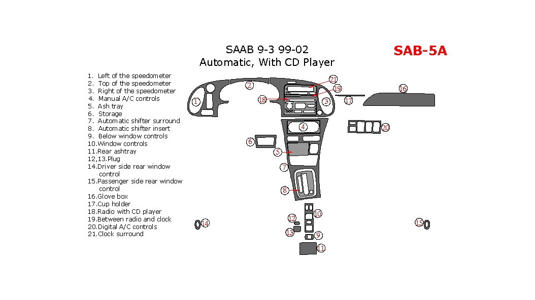 Saab 9-3 1999-2002, Interior Dash Kit, Automatic, With CD Player